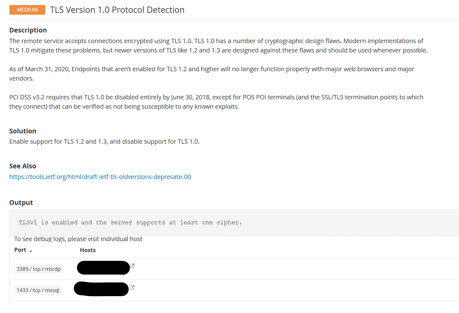 用 nmap 檢查伺服器 1433 是否仍允許 TLS 1.0: